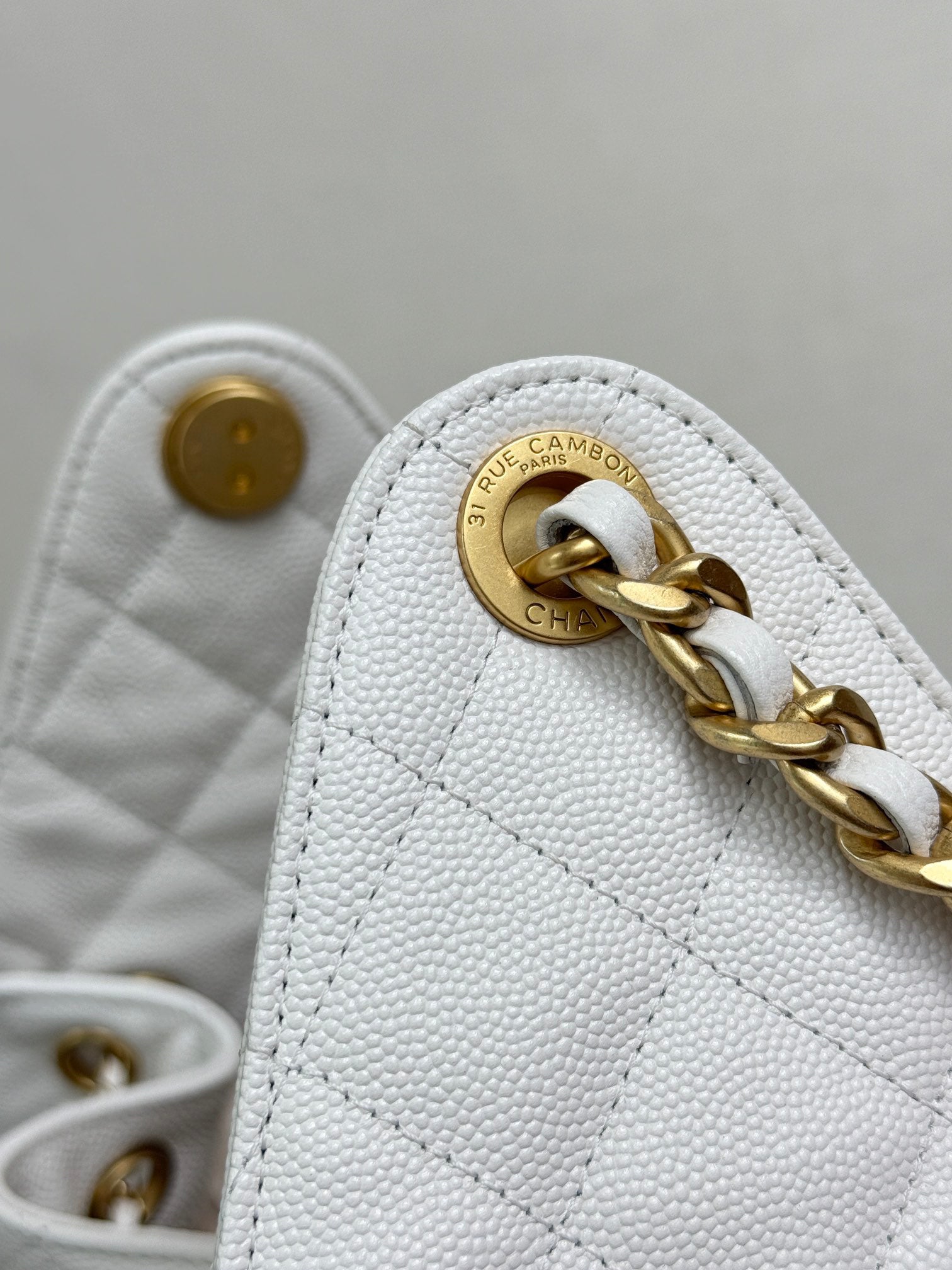 - Timeless Aesthetic: The bag showcases a pristine white color that exudes sophistication and purity. The iconic diamond - quilted pattern, a signature design element, adds texture and a sense of opulence. Complemented by lustrous gold - tone hardware, including the emblematic interlocking logo, it creates a striking visual contrast that is both eye - catching and refined.
