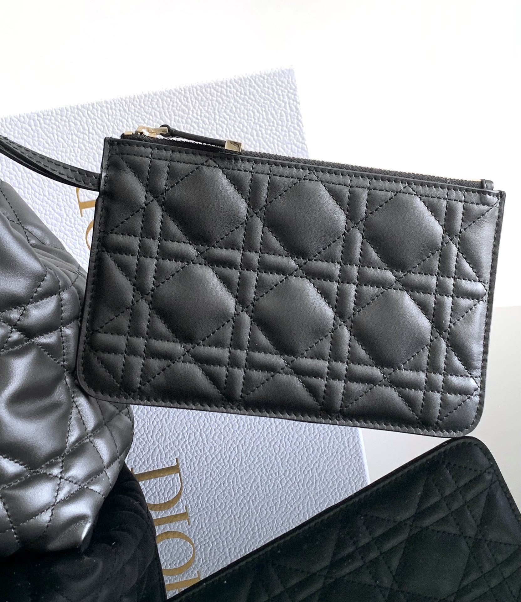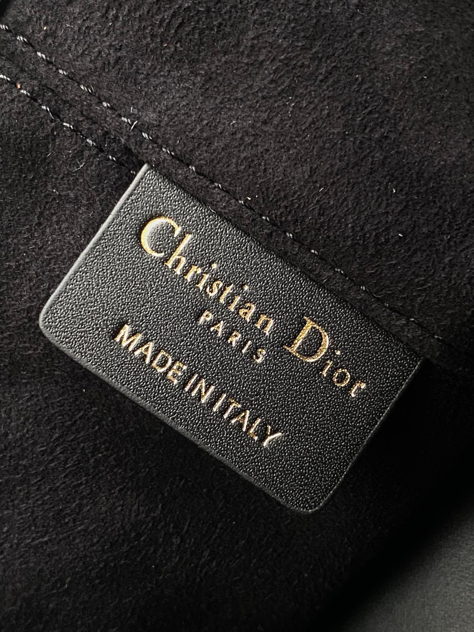Crafted from premium leather, the bag showcases the iconic quilted pattern, a signature of Dior's exquisite craftsmanship. The deep black hue exudes sophistication and versatility, effortlessly complementing any outfit in your wardrobe. The meticulous stitching and plush texture of the quilted surface not only enhance its visual appeal but also attest to its superior quality.