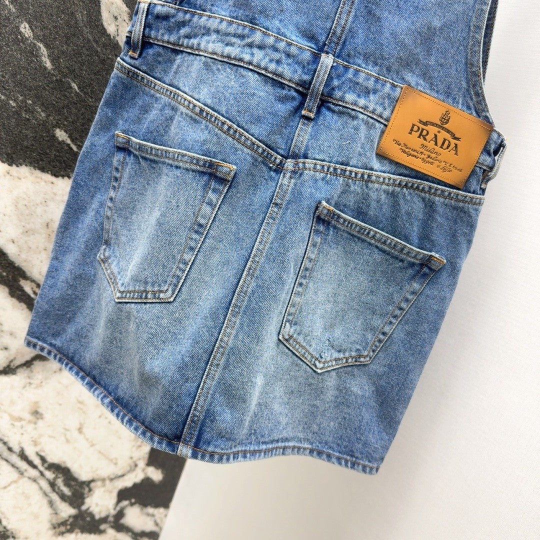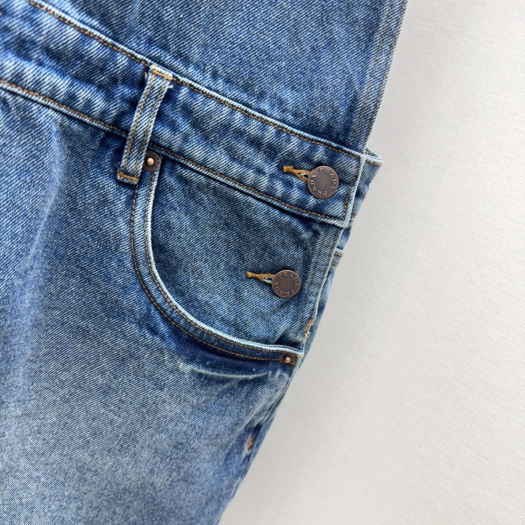 This Prada denim overall mini dress is a perfect blend of classic charm and contemporary style.