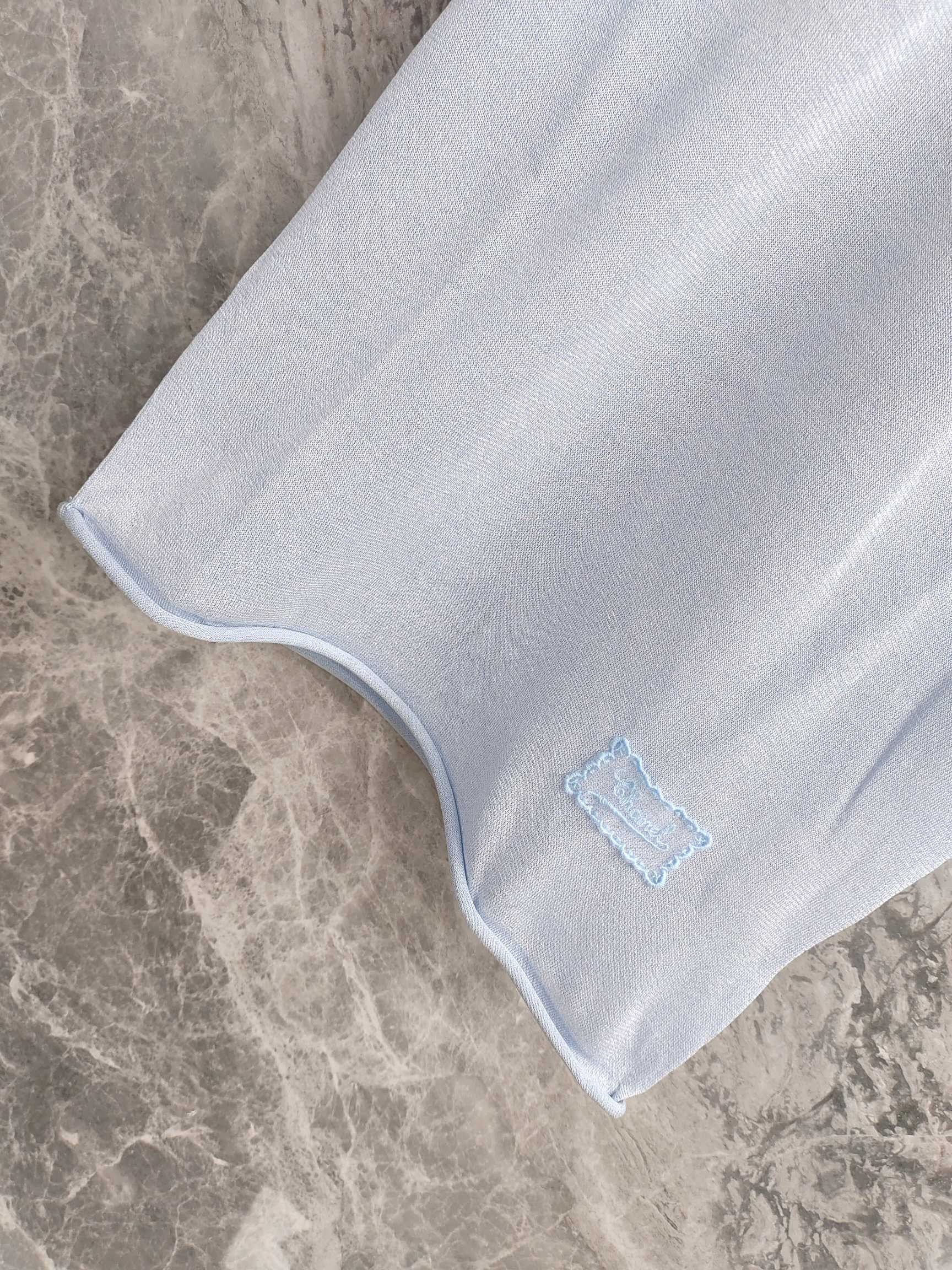 Step into the world of timeless elegance with this exquisite Chanel light blue short - sleeved knit top.
