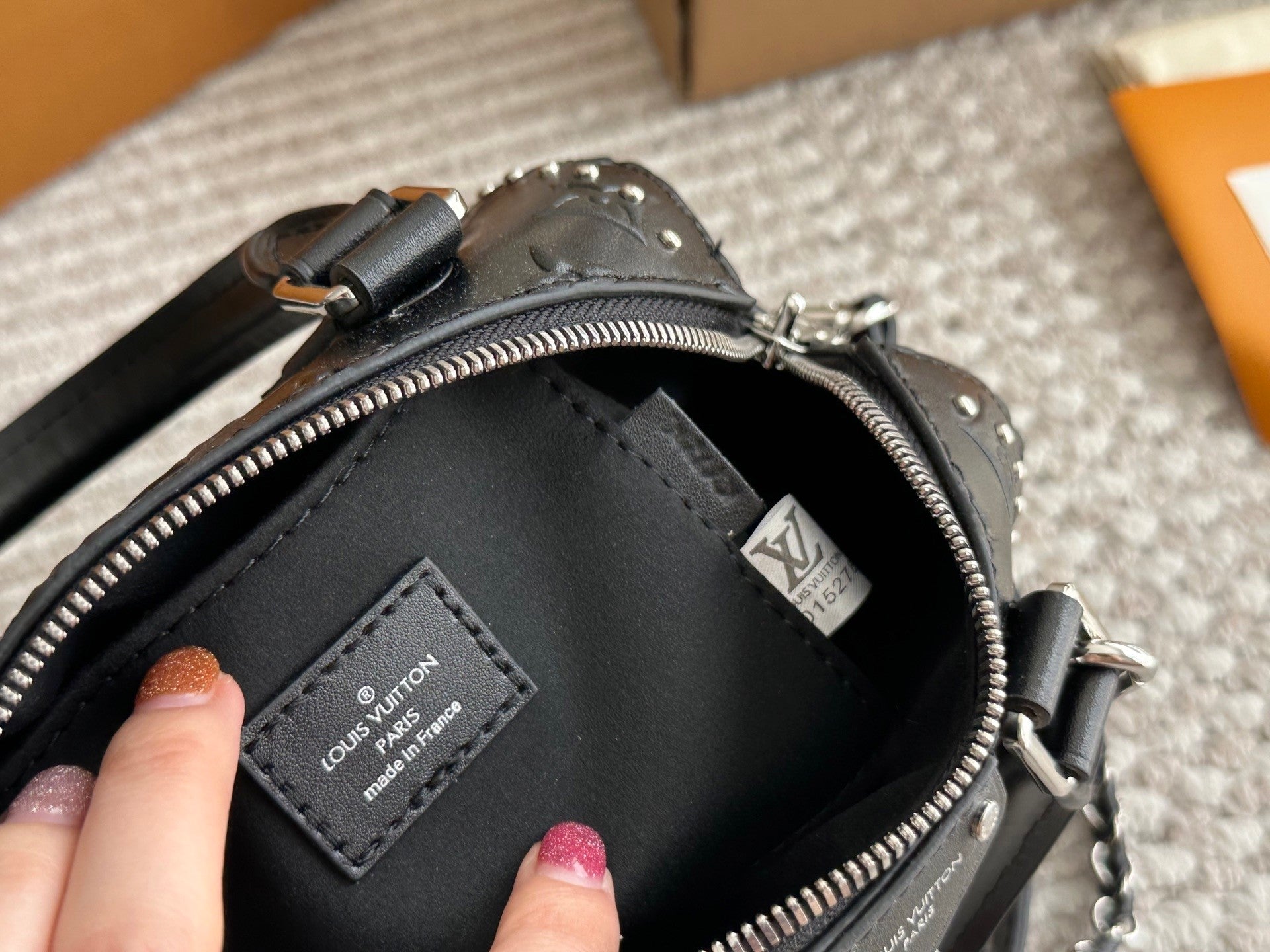 Measuring 20*14cm, it offers a compact yet functional space for your daily essentials. The silver - toned studs add an edgy, contemporary twist, while the top handle and detachable chain - leather strap provide versatile carrying options. The signature padlock and zipper detail not only enhance security but also elevate the bag's stylish aesthetic. A perfect blend of classic design and modern flair, this bag is a must - have statement piece for fashion - forward individuals.