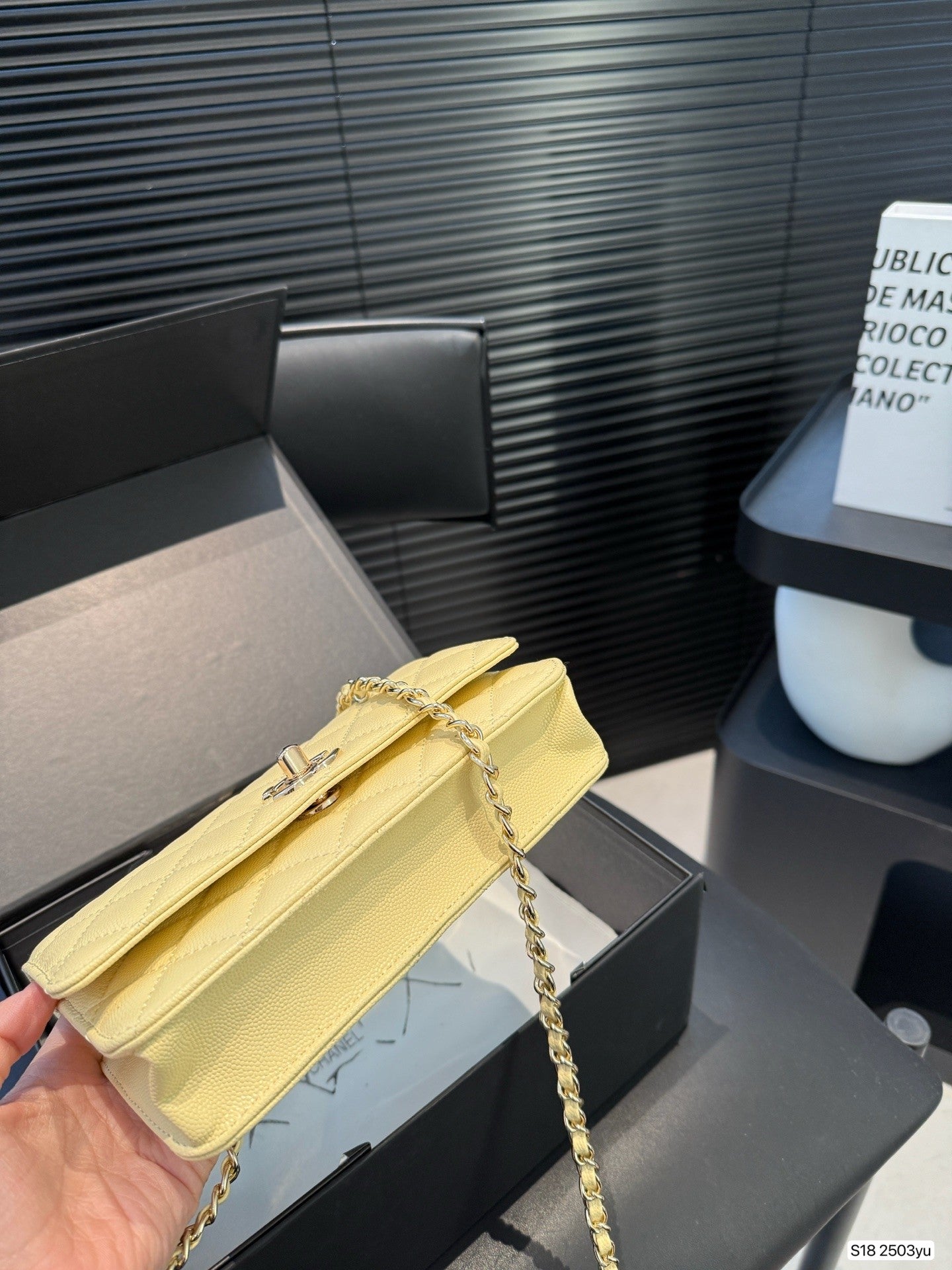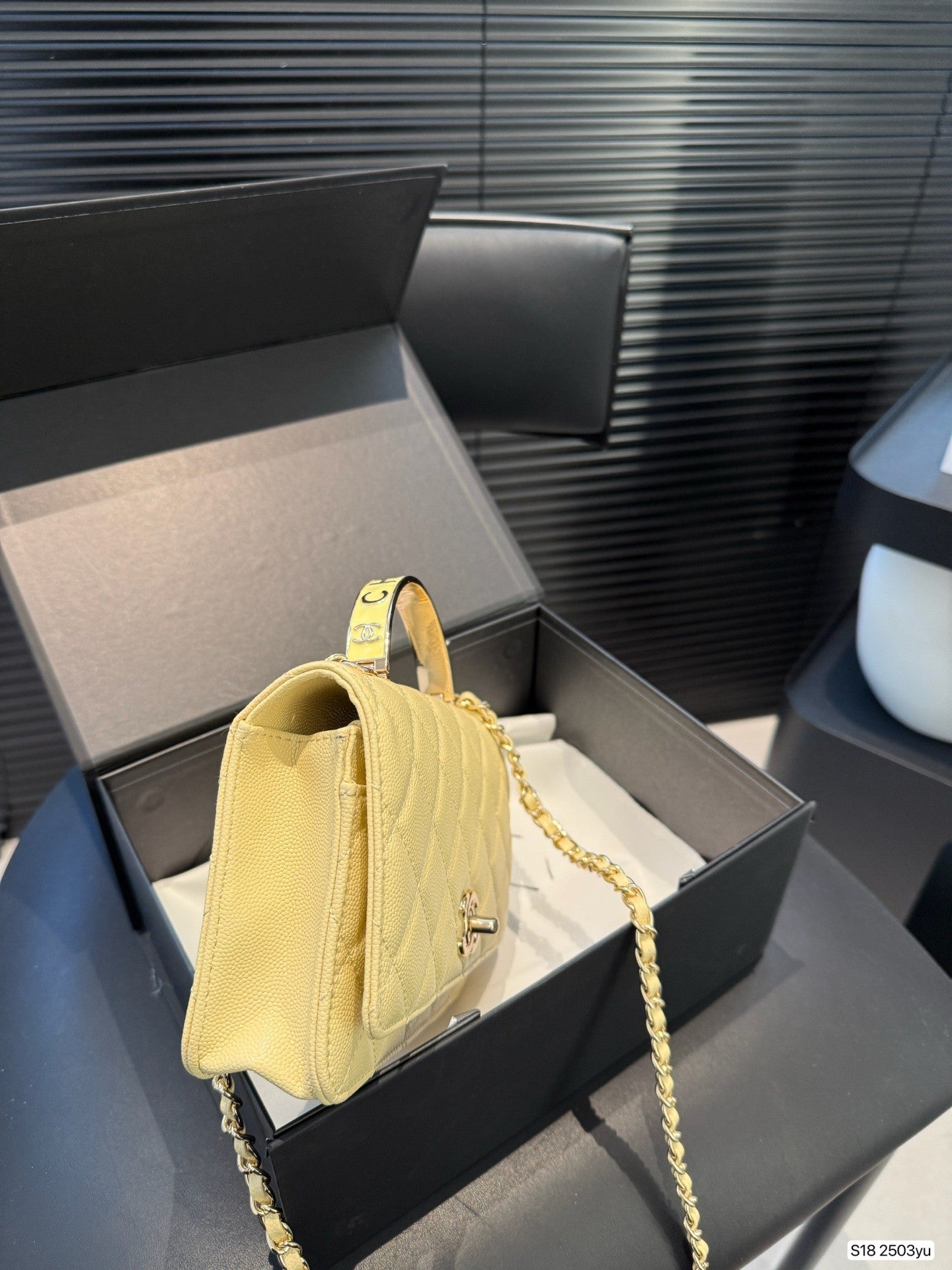 Measuring 19*12cm, it offers a compact yet functional space for your essentials. The gold - toned chain strap, adorned with soft fabric elements for added comfort, and the signature CC logo add a touch of opulence. Whether for a daytime soiree or an evening event, this bag is a statement piece that effortlessly combines style and practicality, a must - have for every fashion connoisseur.