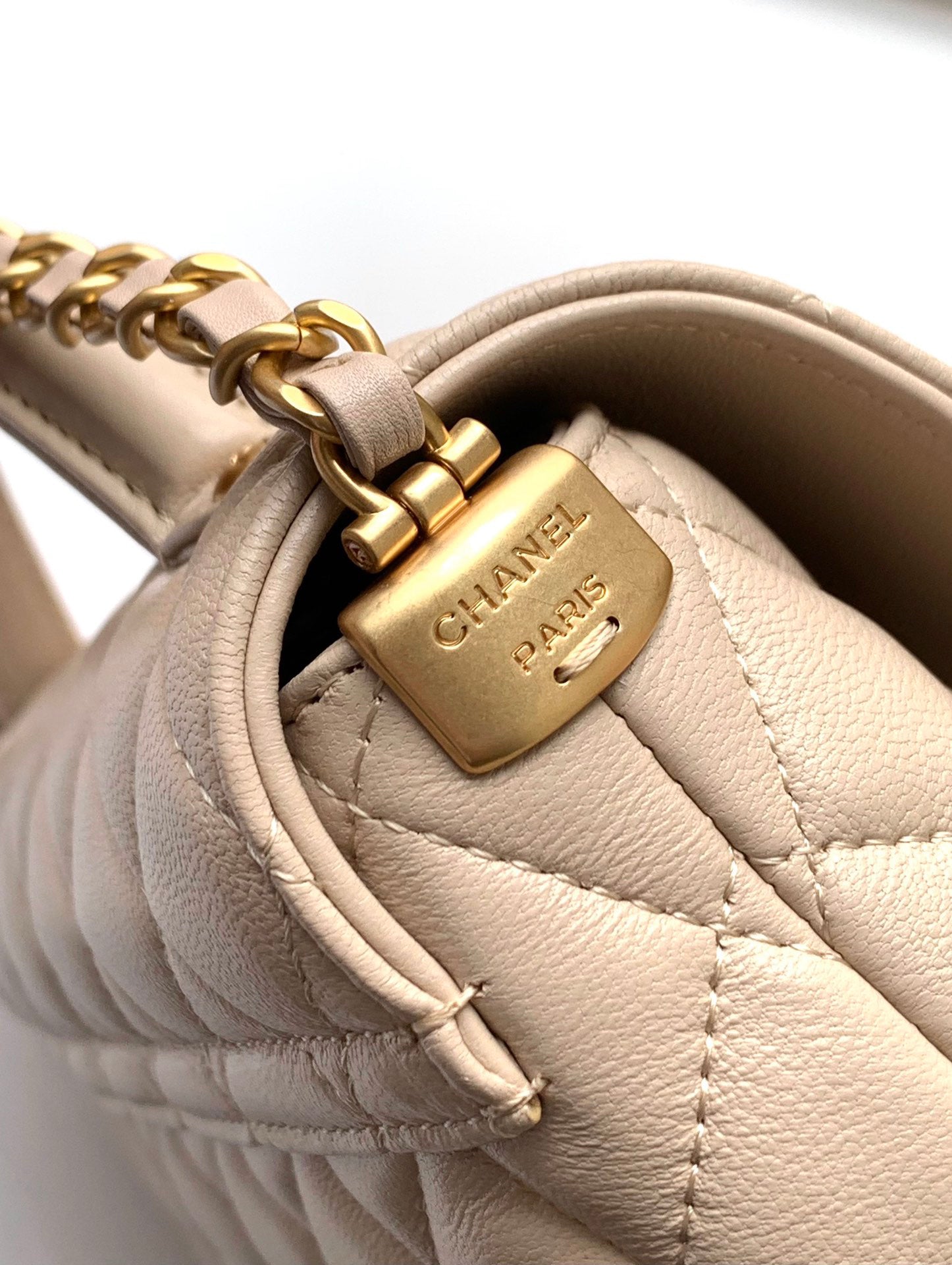 - Stunning Aesthetic: Measuring 16x25x7cm, this bag commands attention with its generous dimensions and refined design. The soft, neutral beige hue exudes sophistication and versatility, while the iconic diamond - quilted pattern adds texture and a classic touch. The gold - toned interlocking logo on the flap is a symbol of luxury, instantly recognizable and synonymous with high - end fashion.