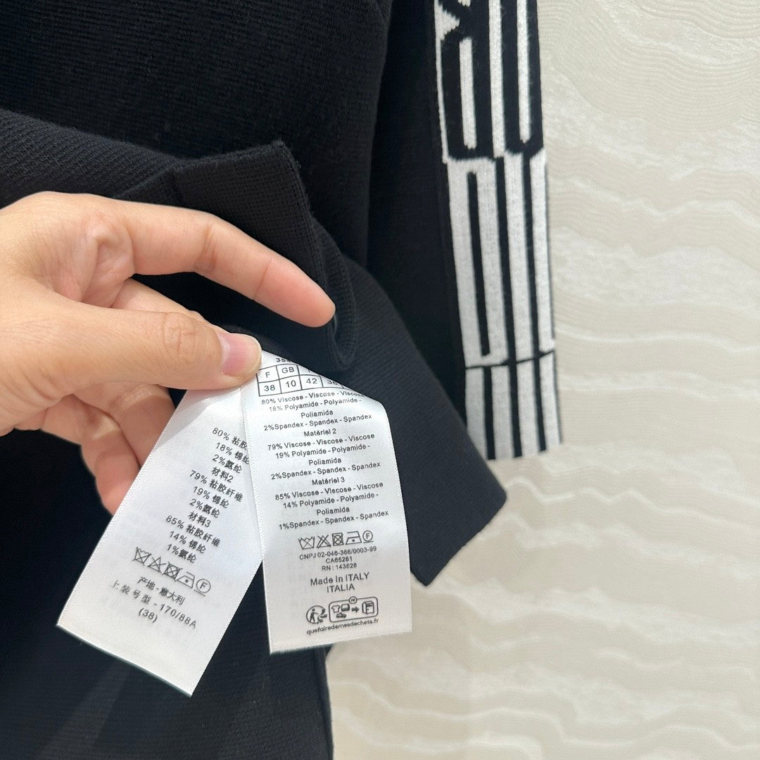 The cardigan comes in two stunning color options - classic black and elegant white. Each hue is elevated by the striking contrast stripes adorning the shoulders and sleeves, a signature Dior touch that seamlessly marries sporty chic with high fashion. The neat button - up front not only adds a refined, preppy element but also allows for versatile styling. Whether worn open over a simple tee for a laid - back look or buttoned up for a more polished appearance, it effortlessly adapts to your aesthetic.