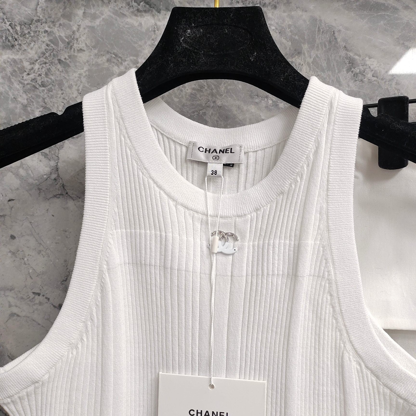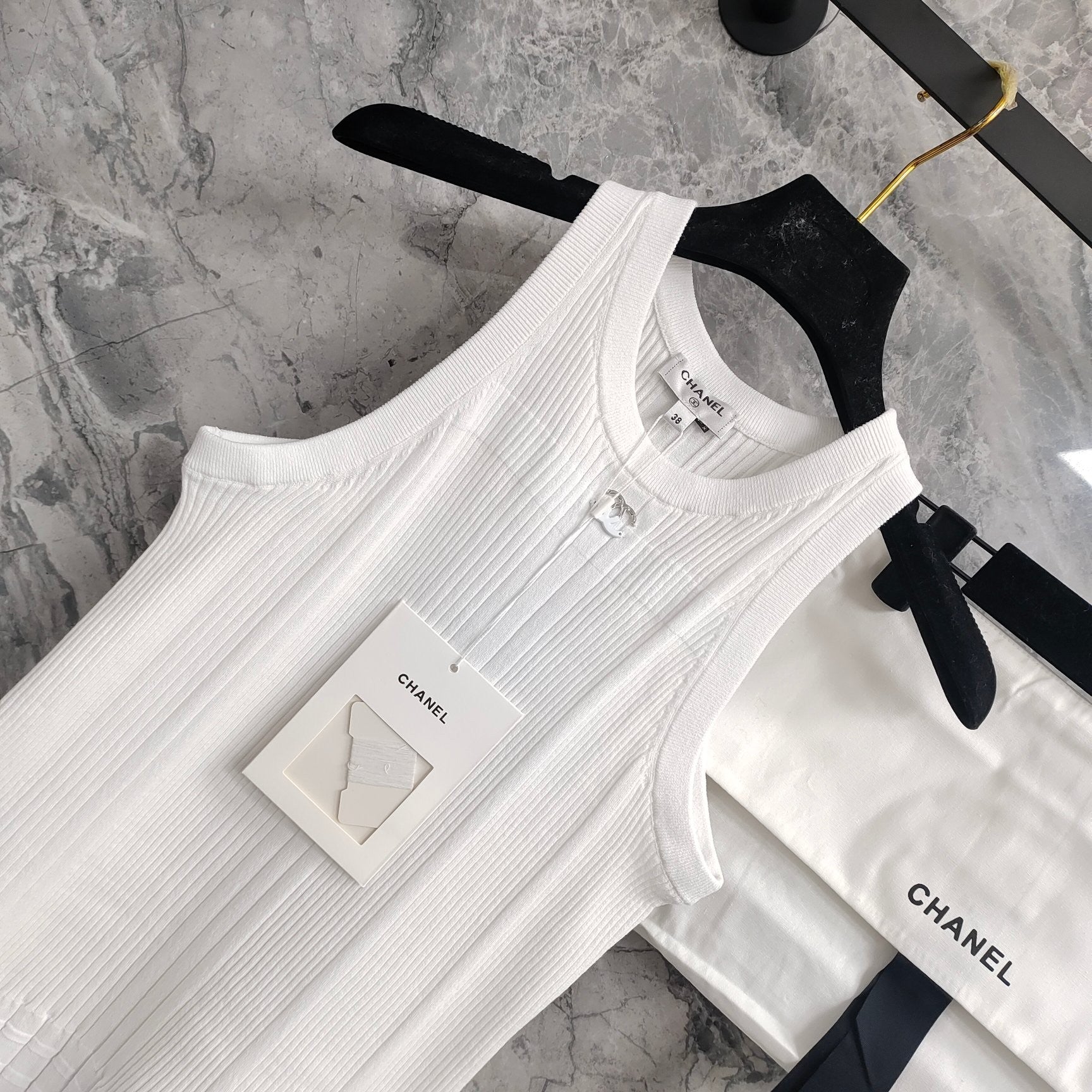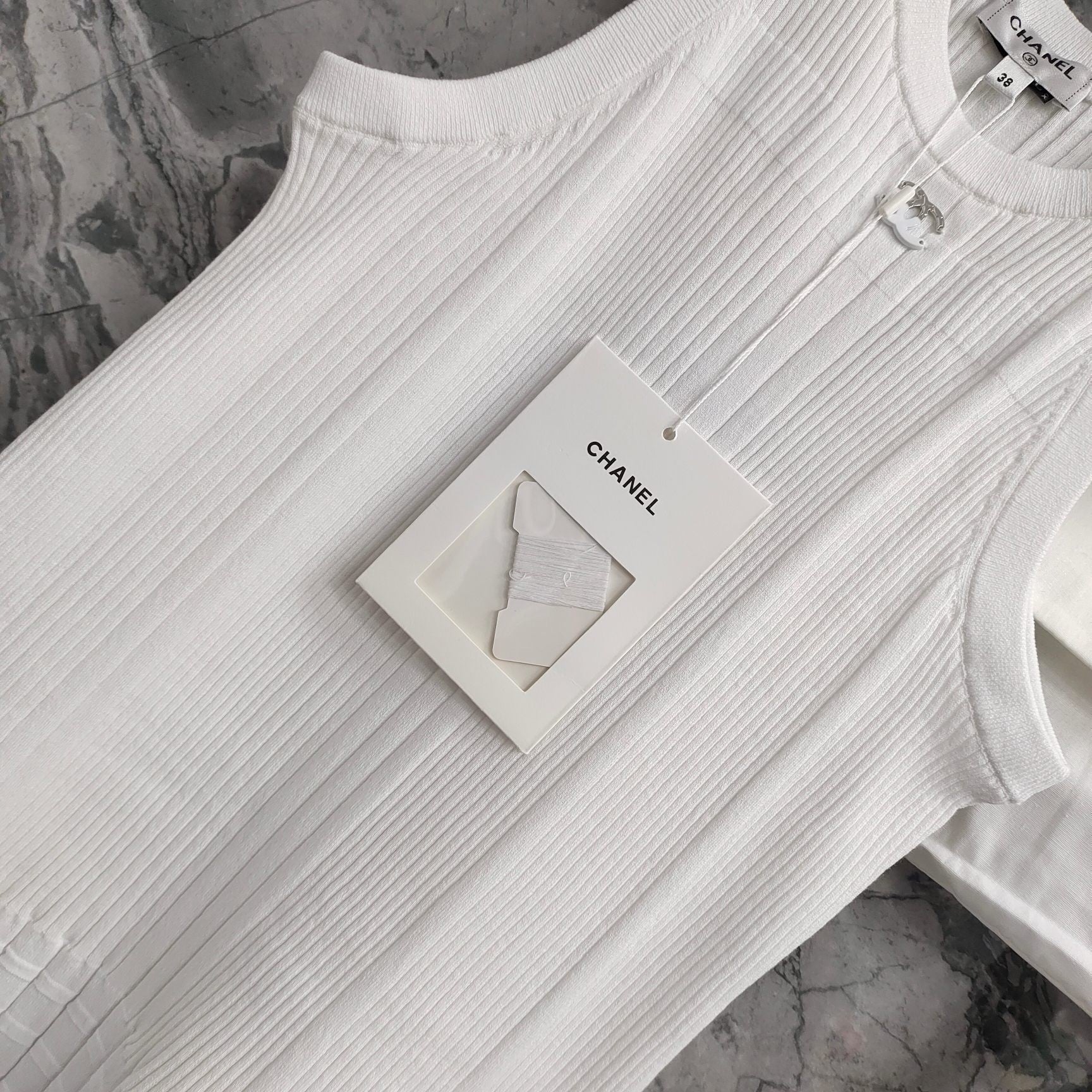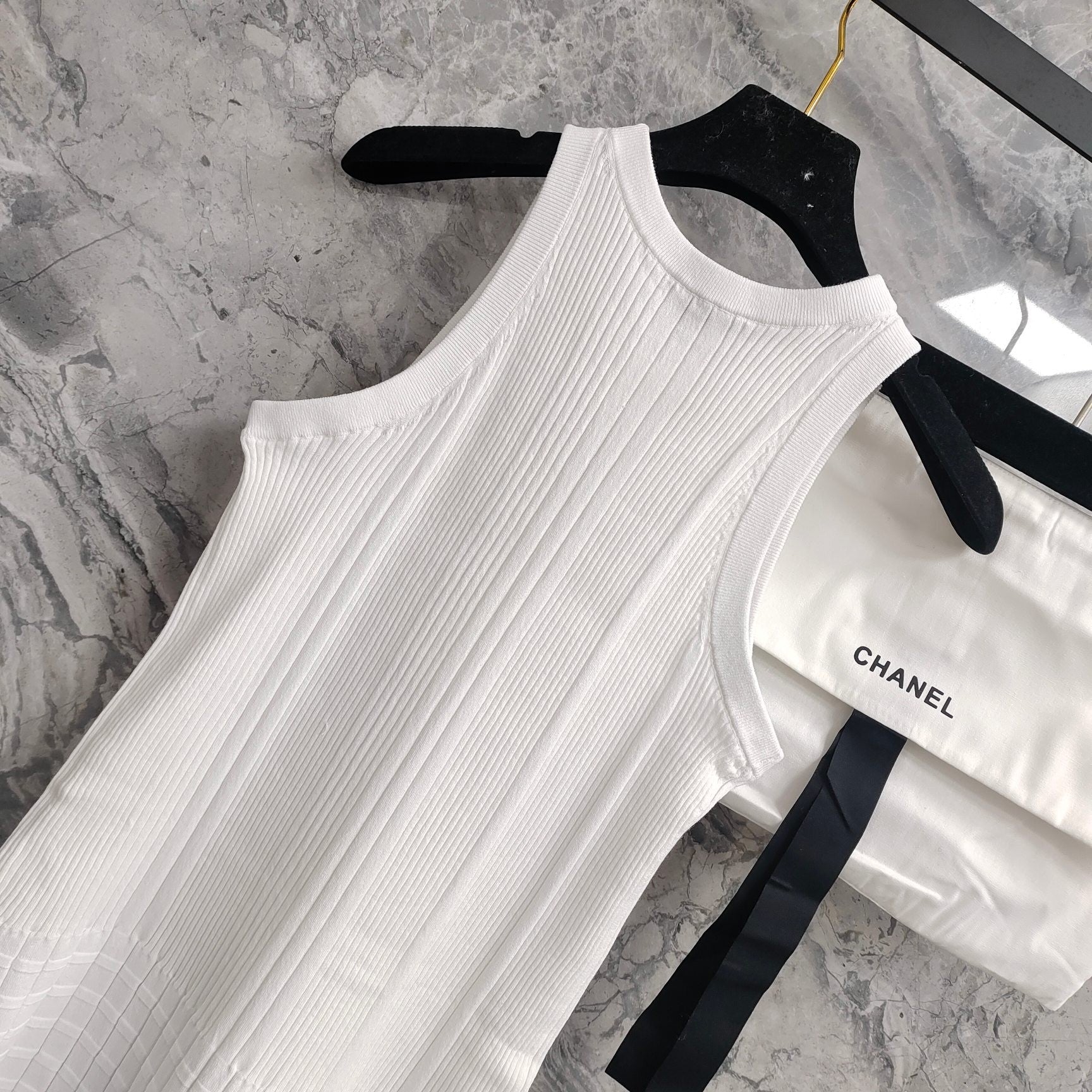 Perfect for a range of occasions, from a chic daytime event to an elegant evening gathering. Pair it with Chanel's iconic accessories, such as classic pumps and a quilted handbag, to complete a look that is both timeless and on - trend. Owning this Chanel sleeveless ribbed knit dress means embracing a legacy of style and sophistication.