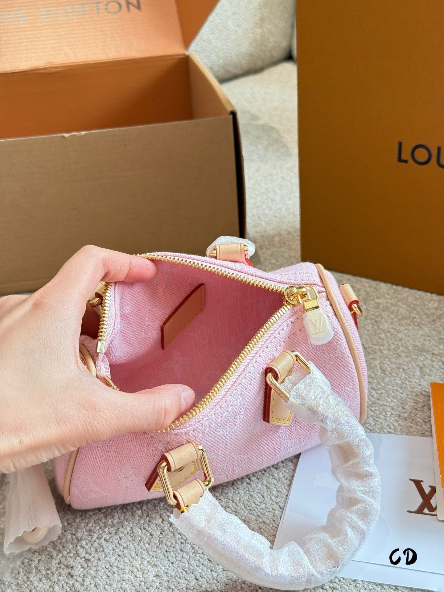In a charming shade of pink, it catches the eye with its unique pillow - like shape, which is both cute and trendy. The bag is adorned with Louis Vuitton's iconic monogram pattern, subtly embossed on the high - quality canvas, a signature element that instantly elevates its allure.