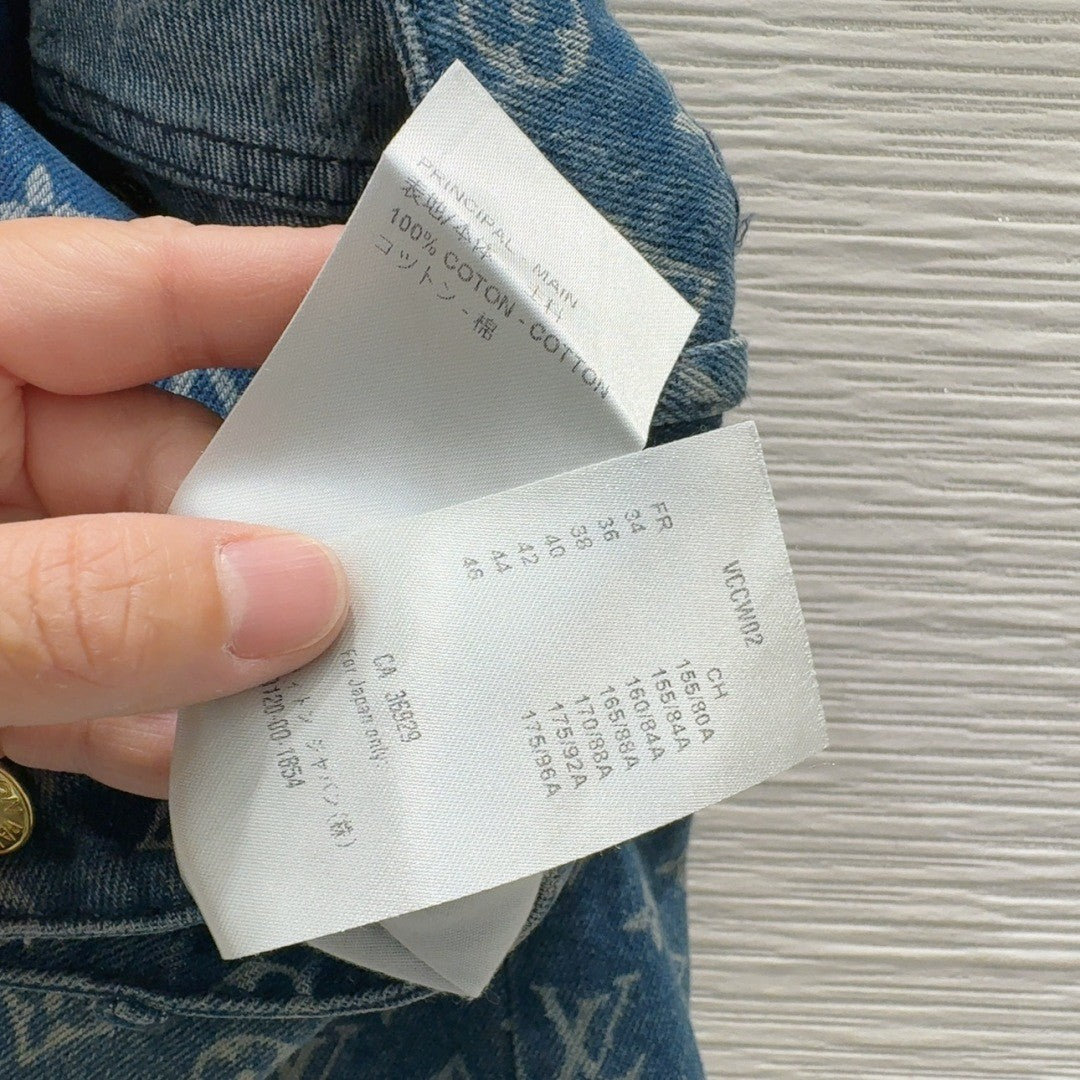 These shorts are adorned with the legendary LV monogram print, a symbol of luxury and heritage. The dark denim hue provides a sophisticated backdrop for the monogram, while the contrasting stitching adds a touch of detail that elevates the overall look. The high - waisted design not only flatters the figure but also exudes a classic, timeless appeal. Gold - toned buttons and rivets punctuate the shorts, adding a luxurious, eye - catching element.