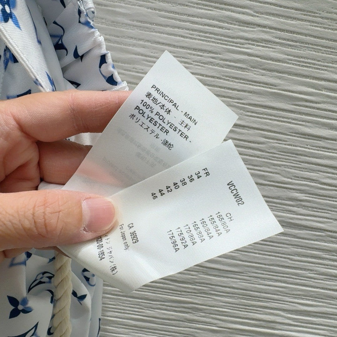 These shorts are adorned with the renowned LV monogram in a captivating blue hue, set against a pristine white backdrop. The all - over print is an instant identifier of Louis Vuitton's heritage and craftsmanship, making a bold style statement. The high - waisted design flatters the figure, while the front button and zipper closure provide a secure and stylish fit.