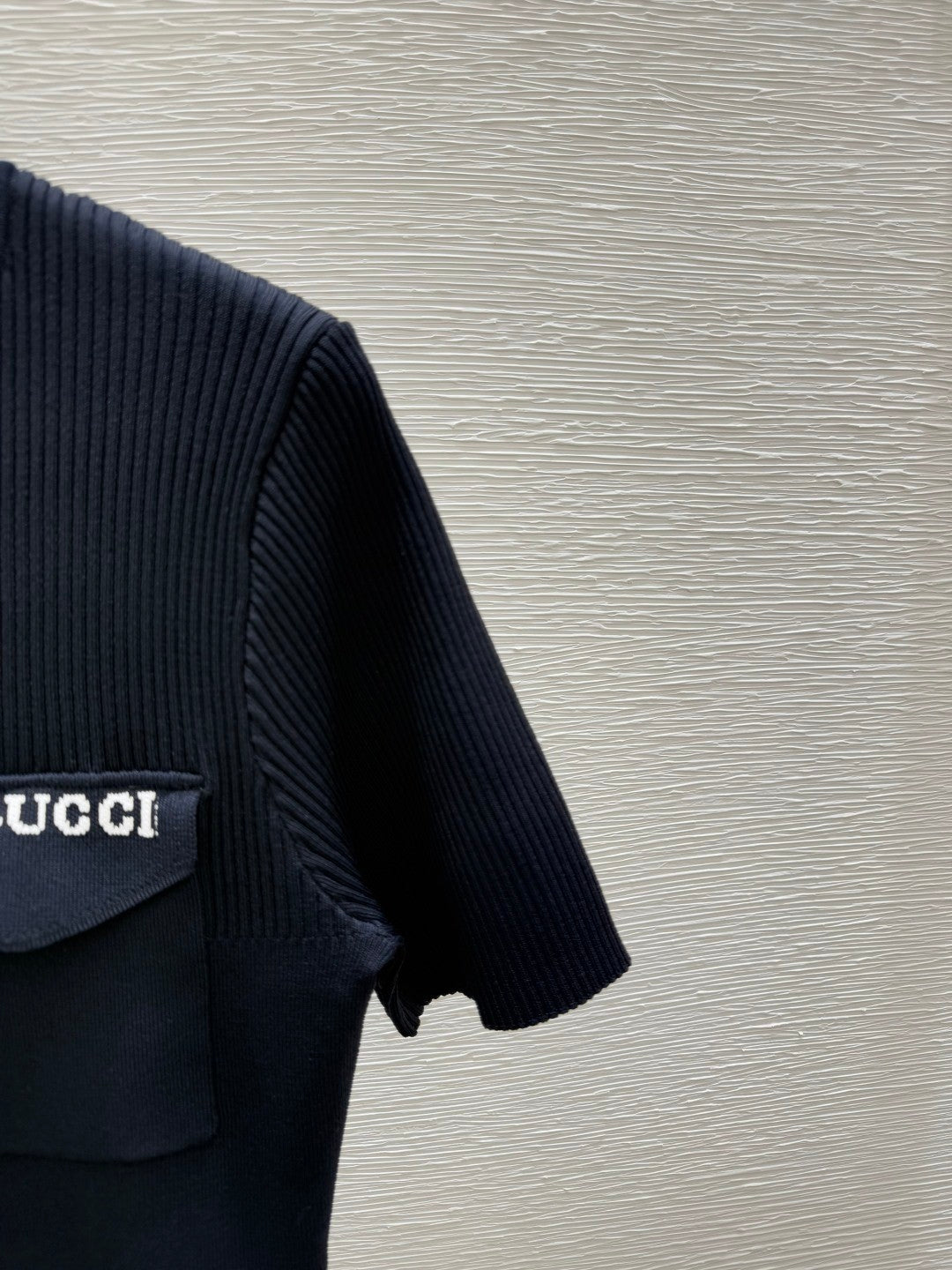 This Gucci dress is a harmonious blend of high - end fashion and comfort. Crafted from premium ribbed knit fabric, it offers a soft touch against the skin while maintaining a structured and flattering silhouette. The deep navy color exudes sophistication and versatility, making it suitable for various occasions.