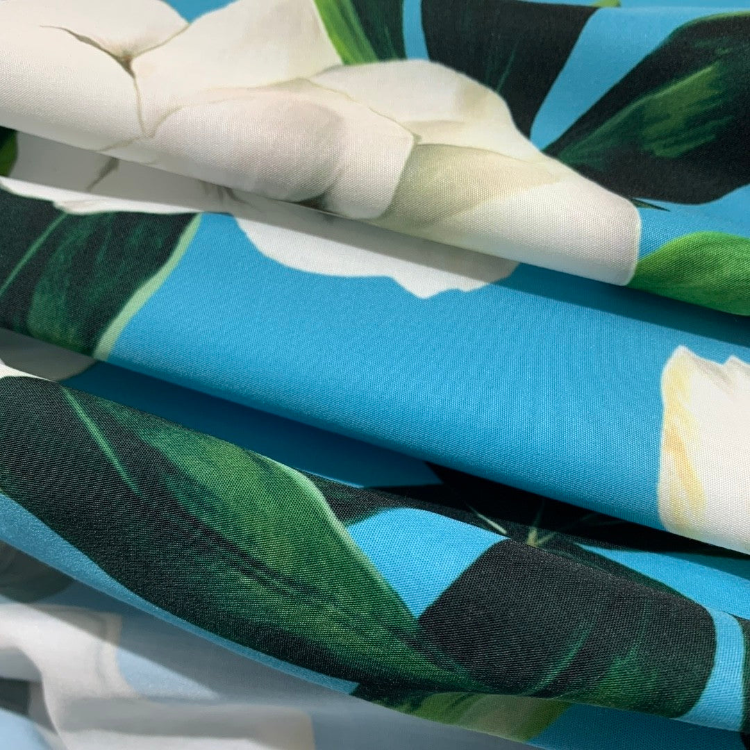 Step into a world of luxury and style with this stunning short - sleeved dress from Gucci. The dress is adorned with a large - scale floral print, featuring delicate white blossoms with golden centers set against a vibrant blue background, evoking a sense of natural beauty and sophistication.