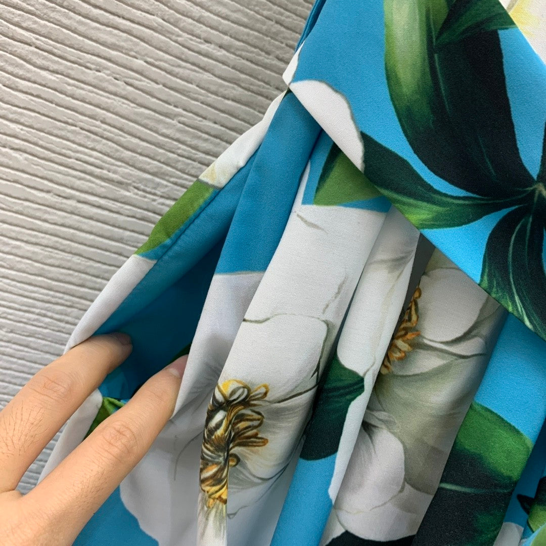 Short - sleeved dress with floral prints, single - breasted placket, and convertible collar