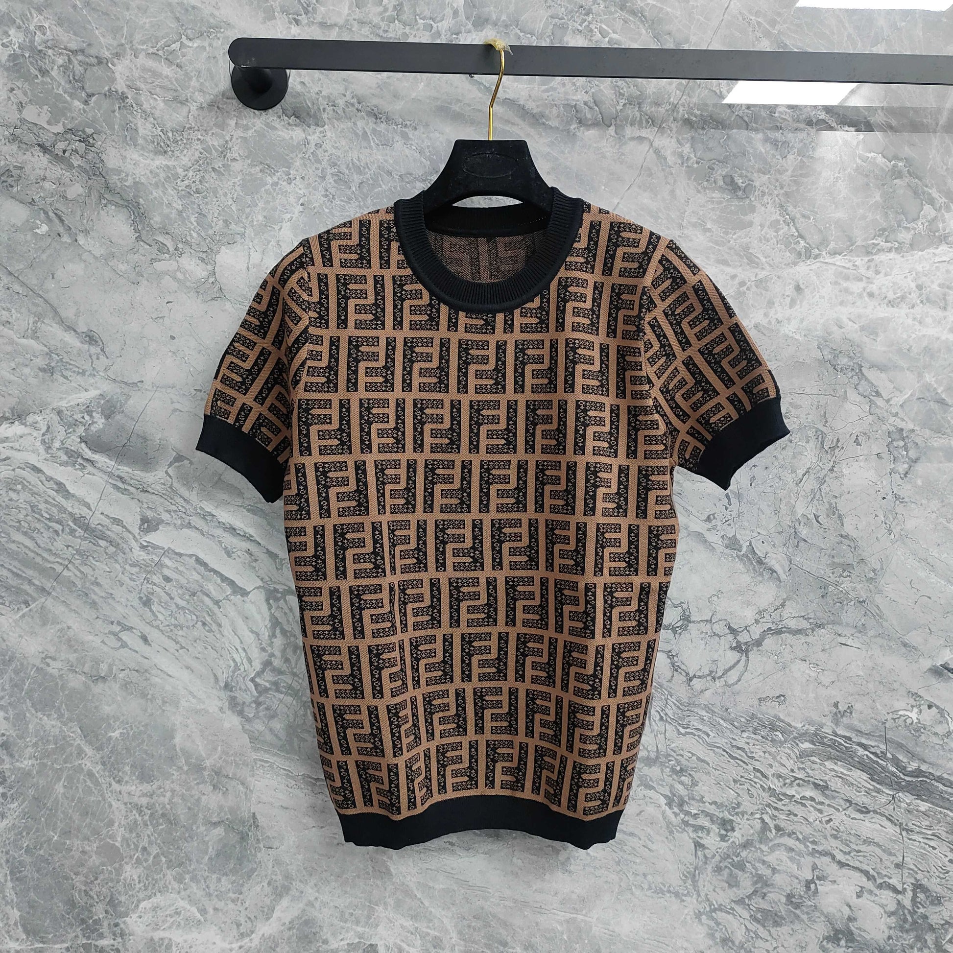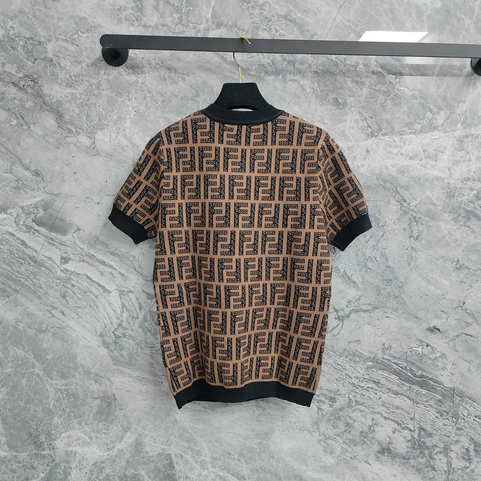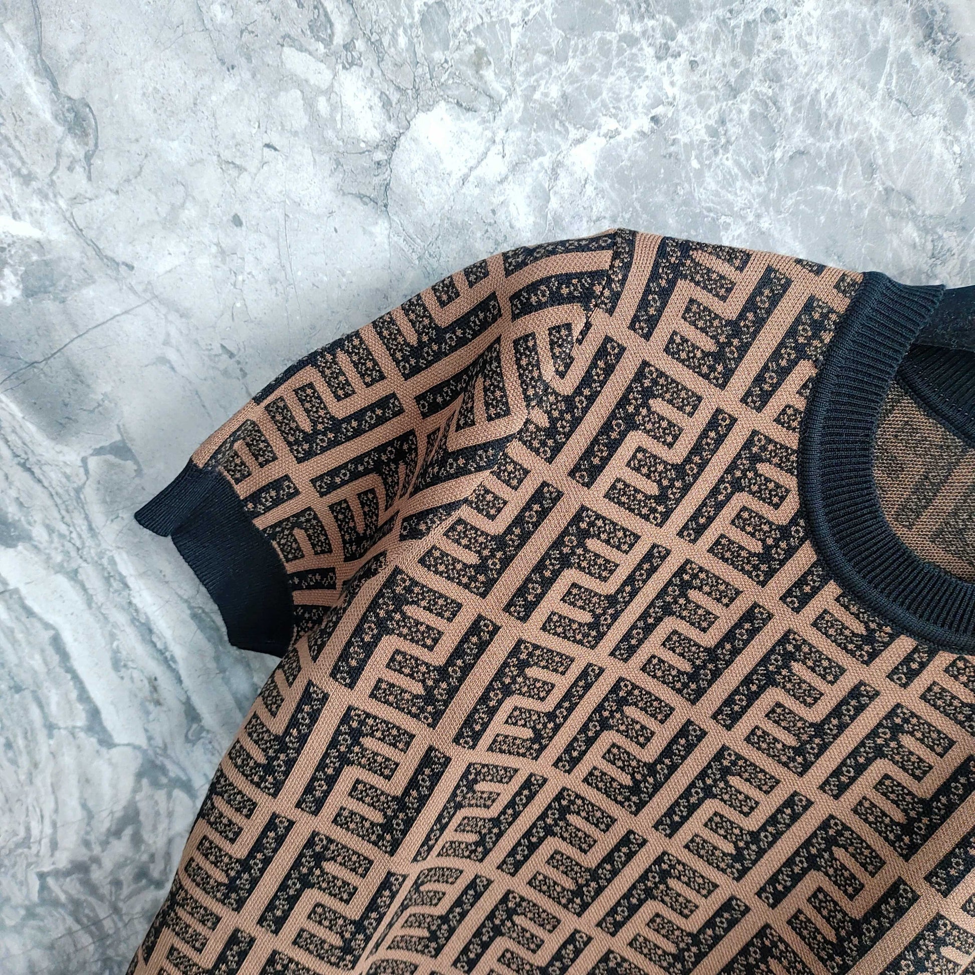 Fendi Short - sleeved T - shirt with Brown and Black Double - F Pattern
