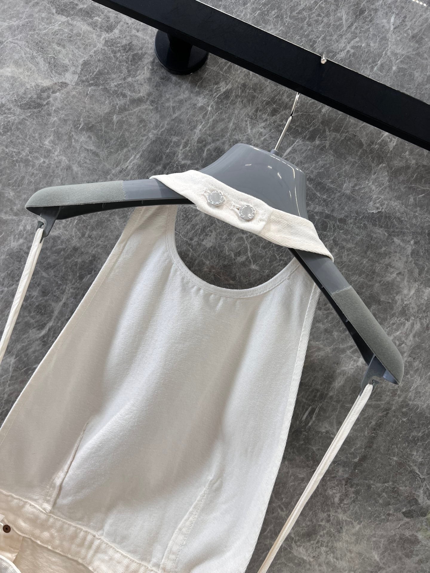 This dress is incredibly versatile. Pair it with a simple pair of white sneakers and a cross - body bag for a casual daytime look, or dress it up with strappy high heels and statement jewelry for an evening out. Whether you're attending a brunch with friends or a summer party, this Prada white denim halter mini dress is sure to make you stand out with its effortless elegance. It's a must - have addition to any fashion - forward wardrobe.