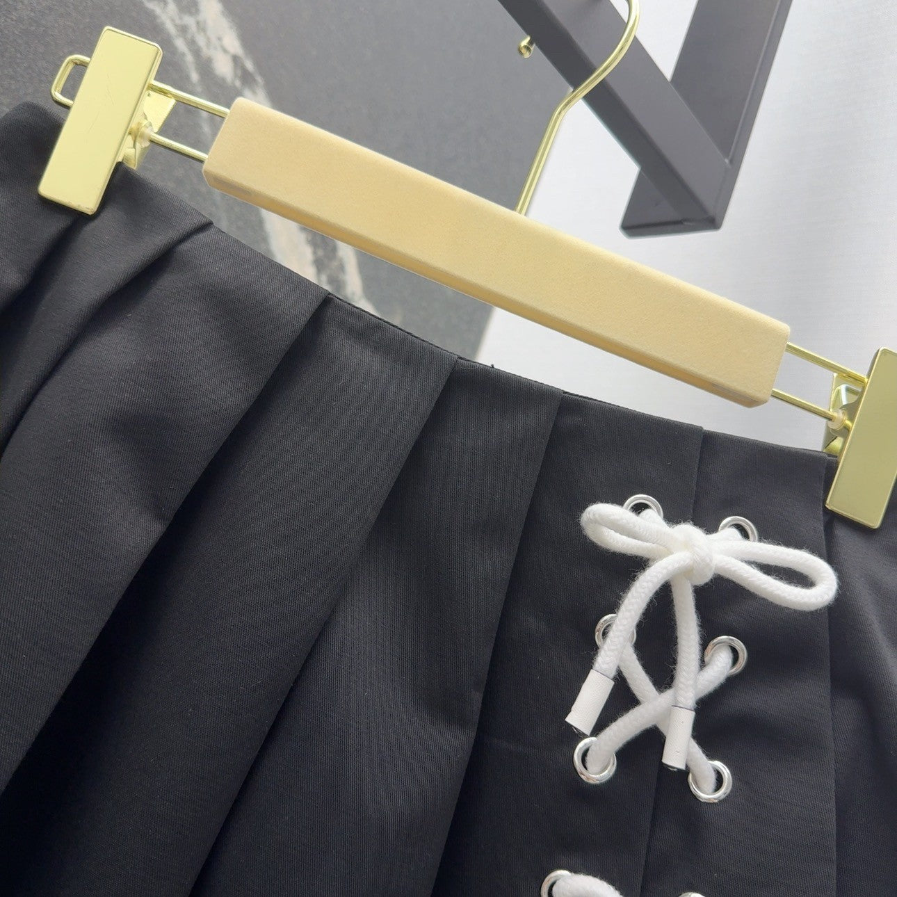 The skirt features neat, well - crafted pleats that give it a dynamic and lively silhouette, creating graceful movement with every step. The highlight is the white lace - up detail on the waist. It not only adds a trendy and edgy touch but also allows for adjustable tightness, helping to define your waist and enhance your figure.