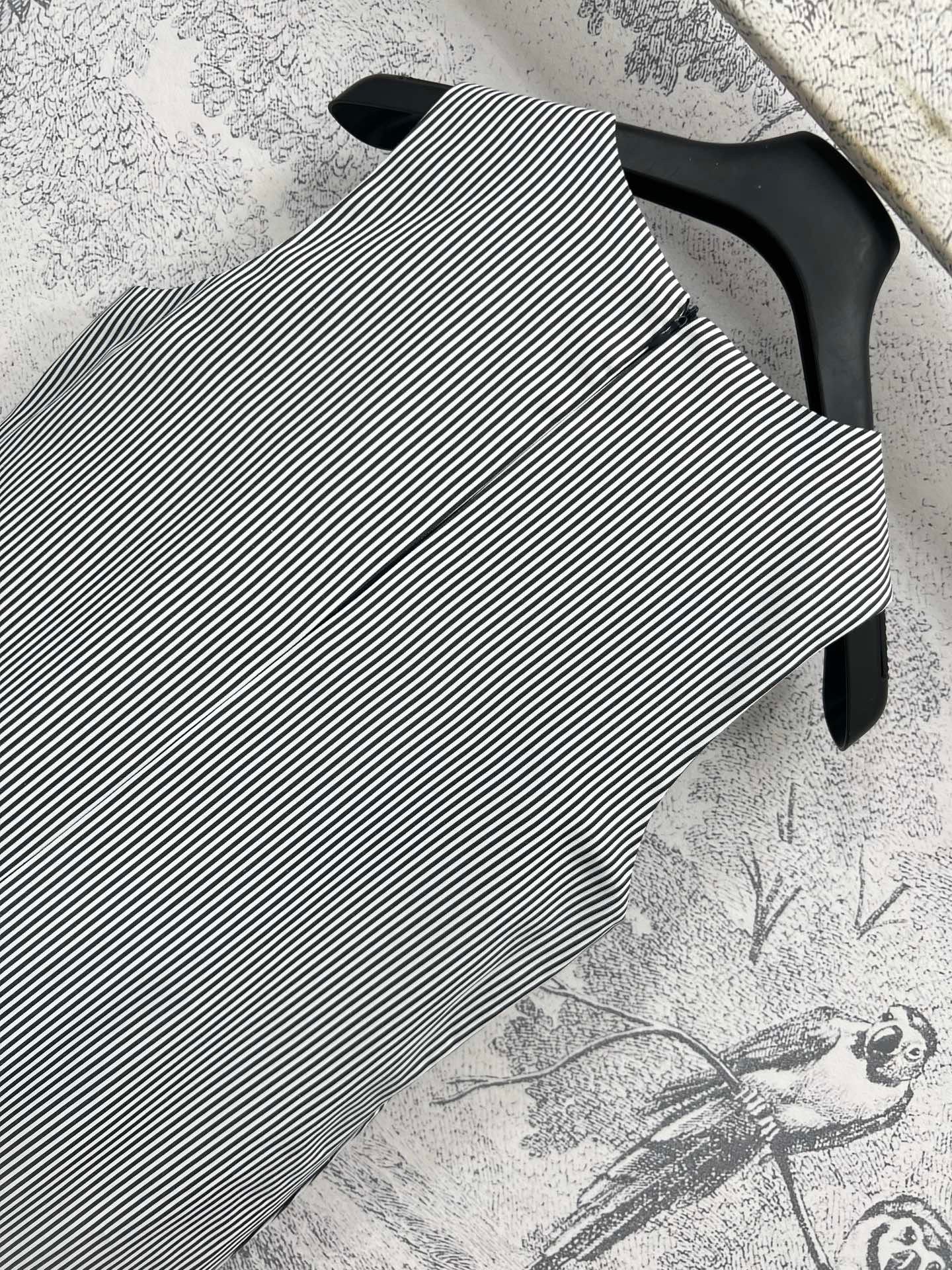 - The dress features classic black - and - white stripes that create a visually striking and timeless pattern. These stripes are meticulously arranged, giving the dress a dynamic yet refined look. The sleeveless design is both elegant and practical, allowing for ease of movement and making it suitable for various seasons. The silhouette is straight and sleek, falling gracefully to enhance your natural figure.