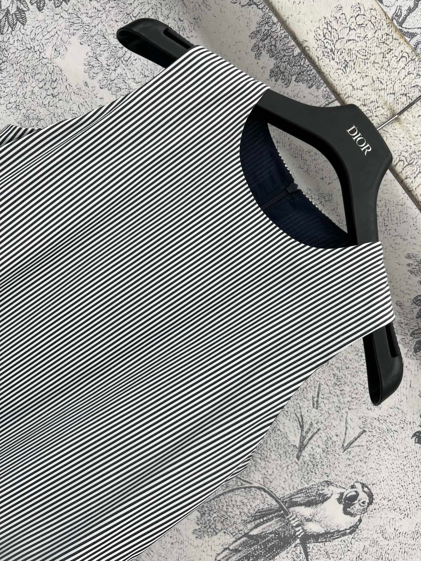 Elevate your wardrobe with this stunning Dior striped sleeveless dress, a perfect fusion of sophistication and contemporary style.