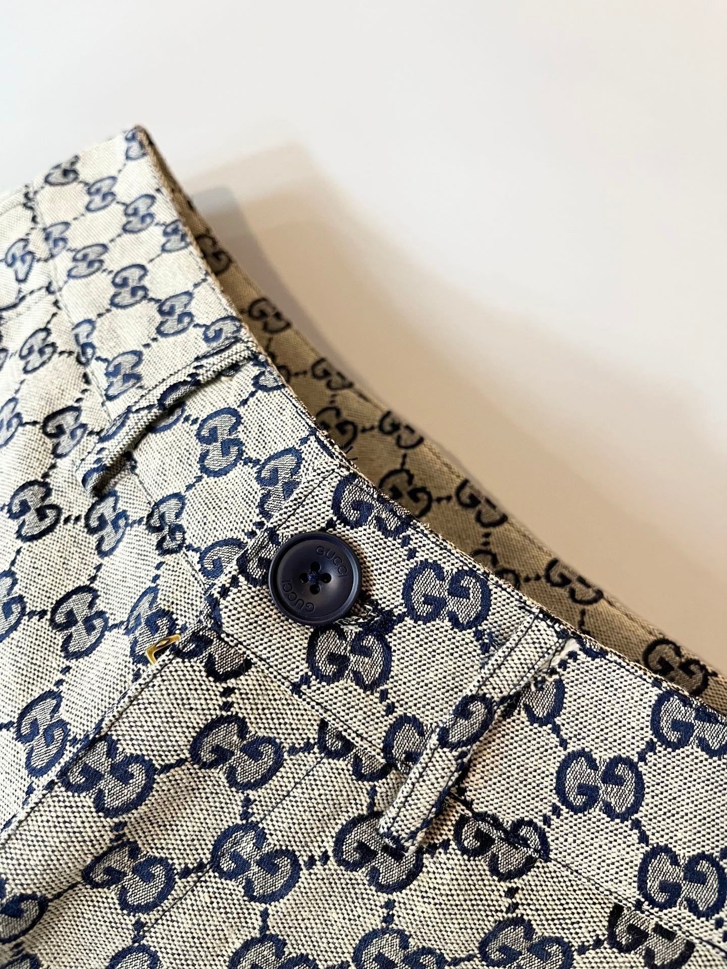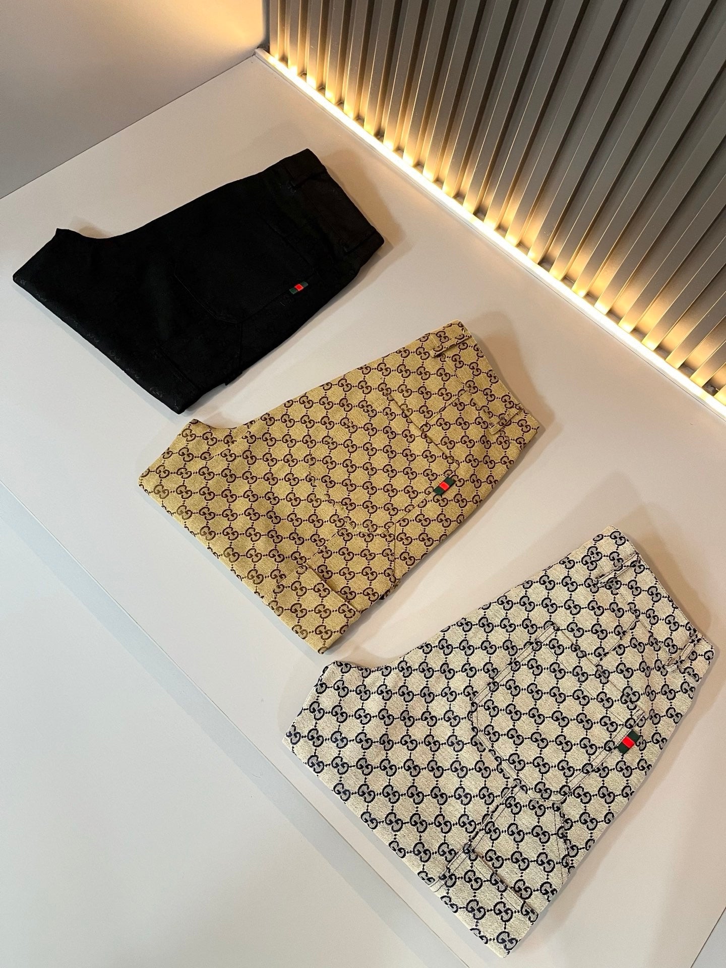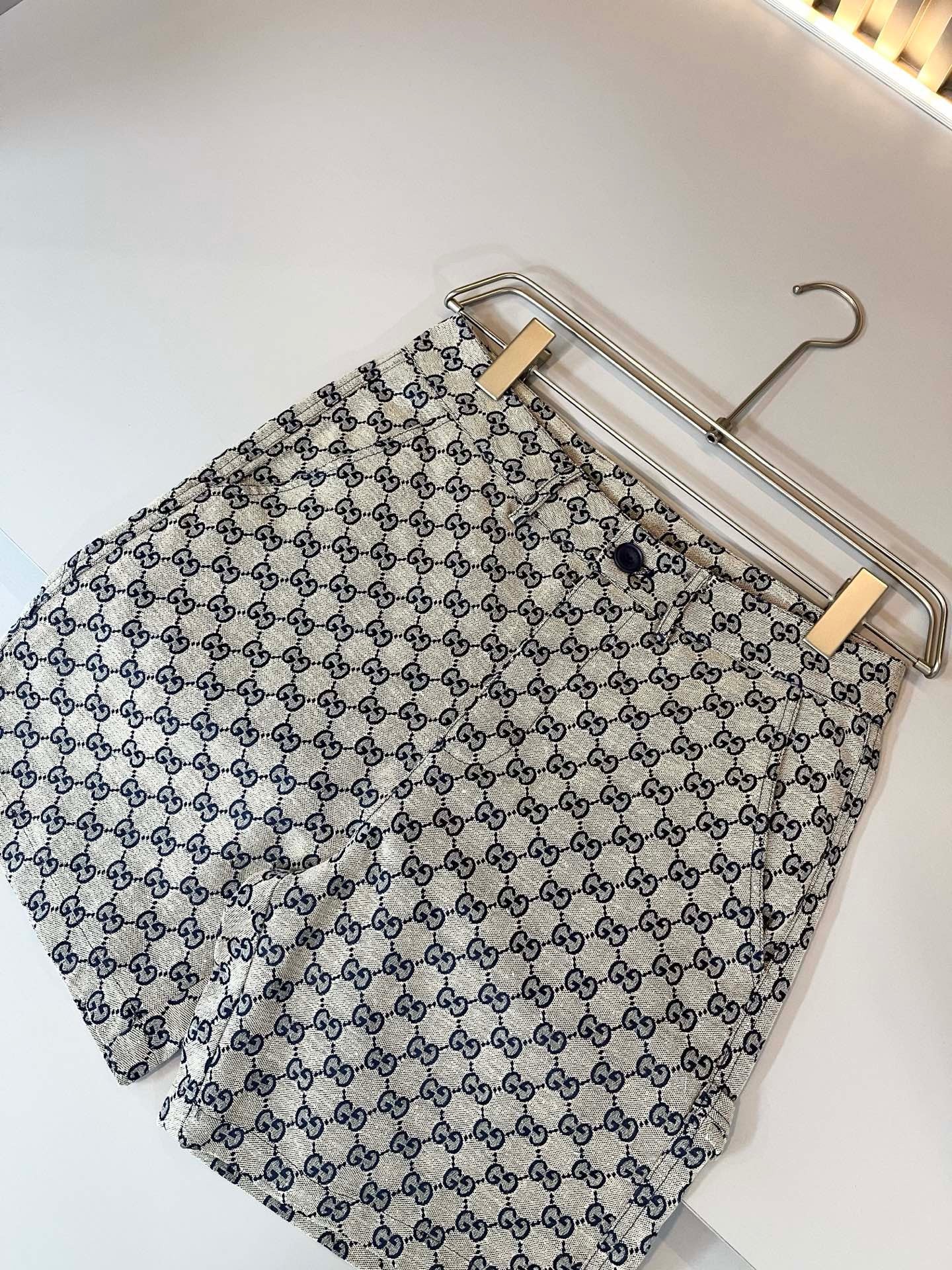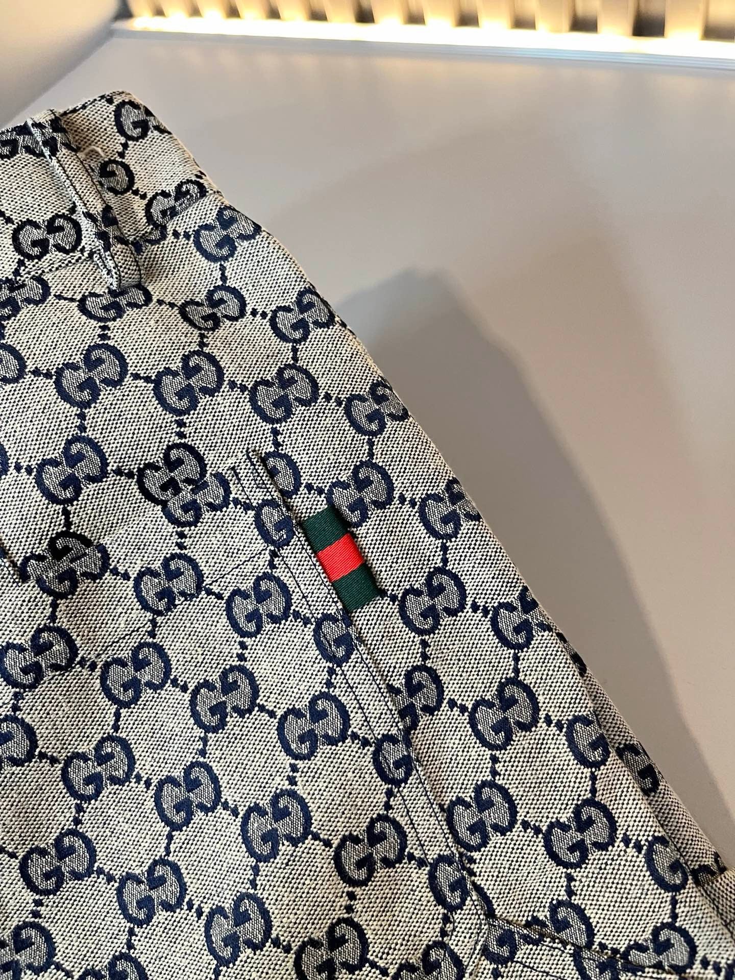 Whether paired with a simple white T - shirt for a casual everyday look or combined with a sophisticated Gucci top for a fashion - forward party appearance, it can handle it with ease. The detailed design at the pockets is ingeniously integrated with the brand elements, subtly revealing a luxurious texture. Owning these shorts means embracing Gucci's unique fashion DNA, allowing you to stand out from the crowd and become the focus of fashion.
