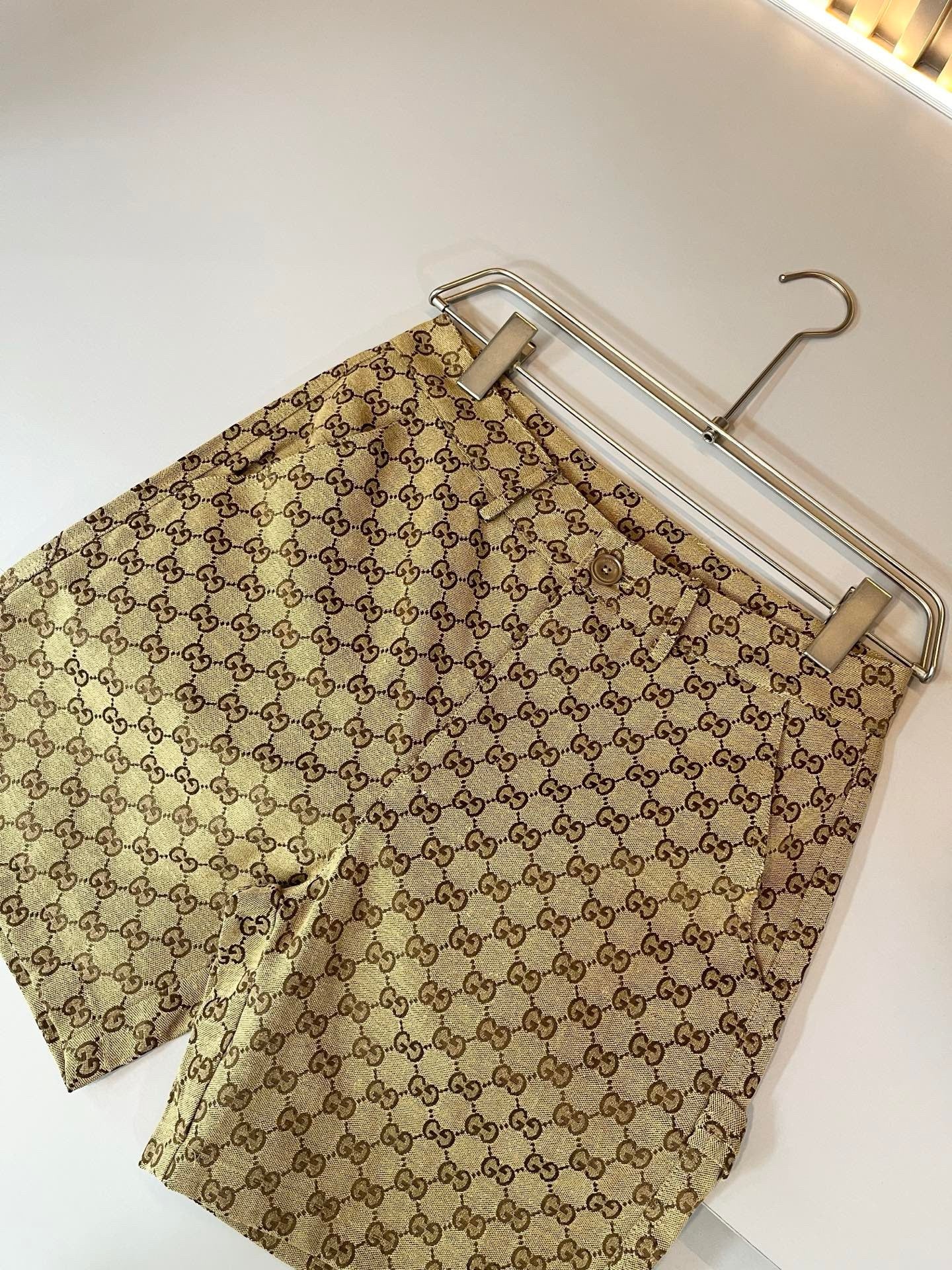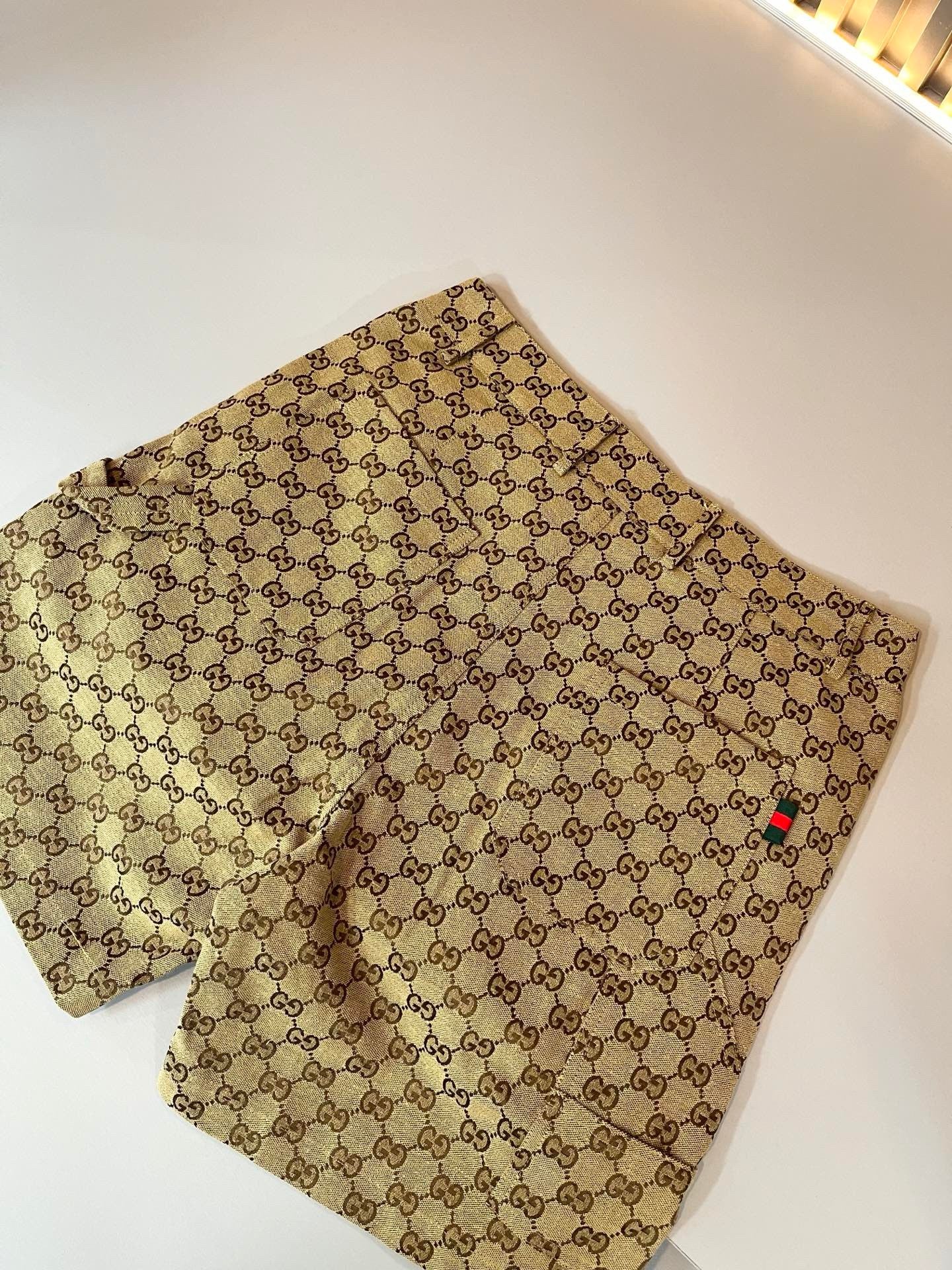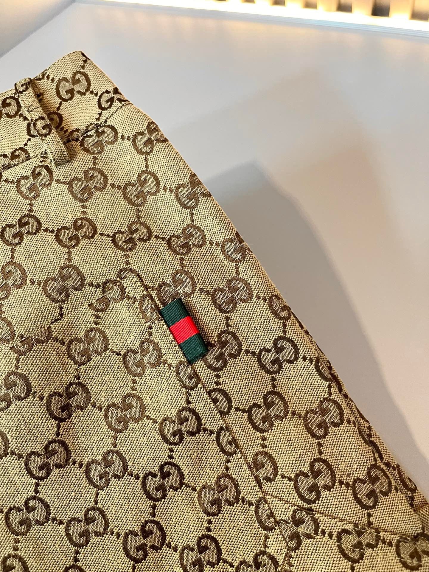 Whether paired with a simple white T - shirt for a casual everyday look or combined with a sophisticated Gucci top for a fashion - forward party appearance, it can handle it with ease. The detailed design at the pockets is ingeniously integrated with the brand elements, subtly revealing a luxurious texture. Owning these shorts means embracing Gucci's unique fashion DNA, allowing you to stand out from the crowd and become the focus of fashion.