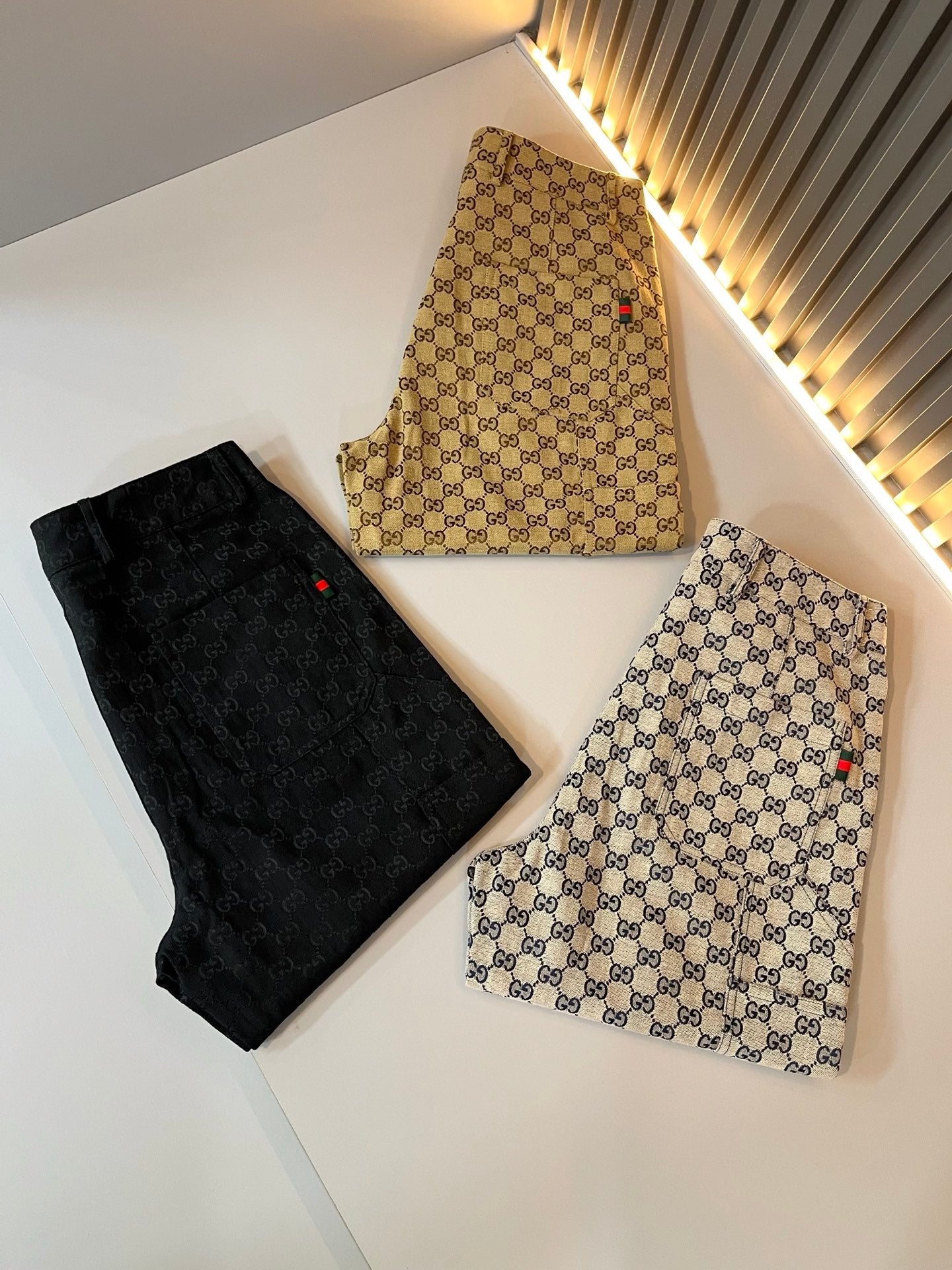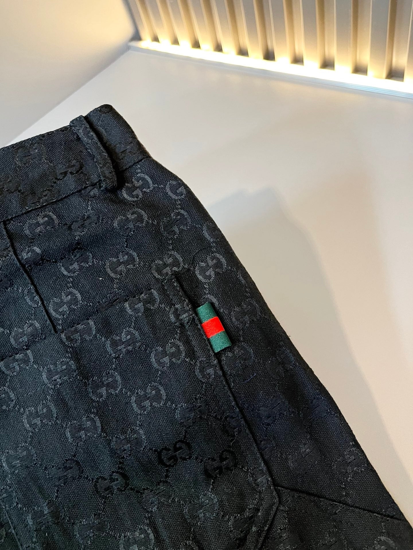 Whether paired with a simple white T - shirt for a casual everyday look or combined with a sophisticated Gucci top for a fashion - forward party appearance, it can handle it with ease. The detailed design at the pockets is ingeniously integrated with the brand elements, subtly revealing a luxurious texture. Owning these shorts means embracing Gucci's unique fashion DNA, allowing you to stand out from the crowd and become the focus of fashion.
